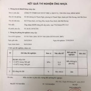 Kết quả thí nghiệm ống nhựa